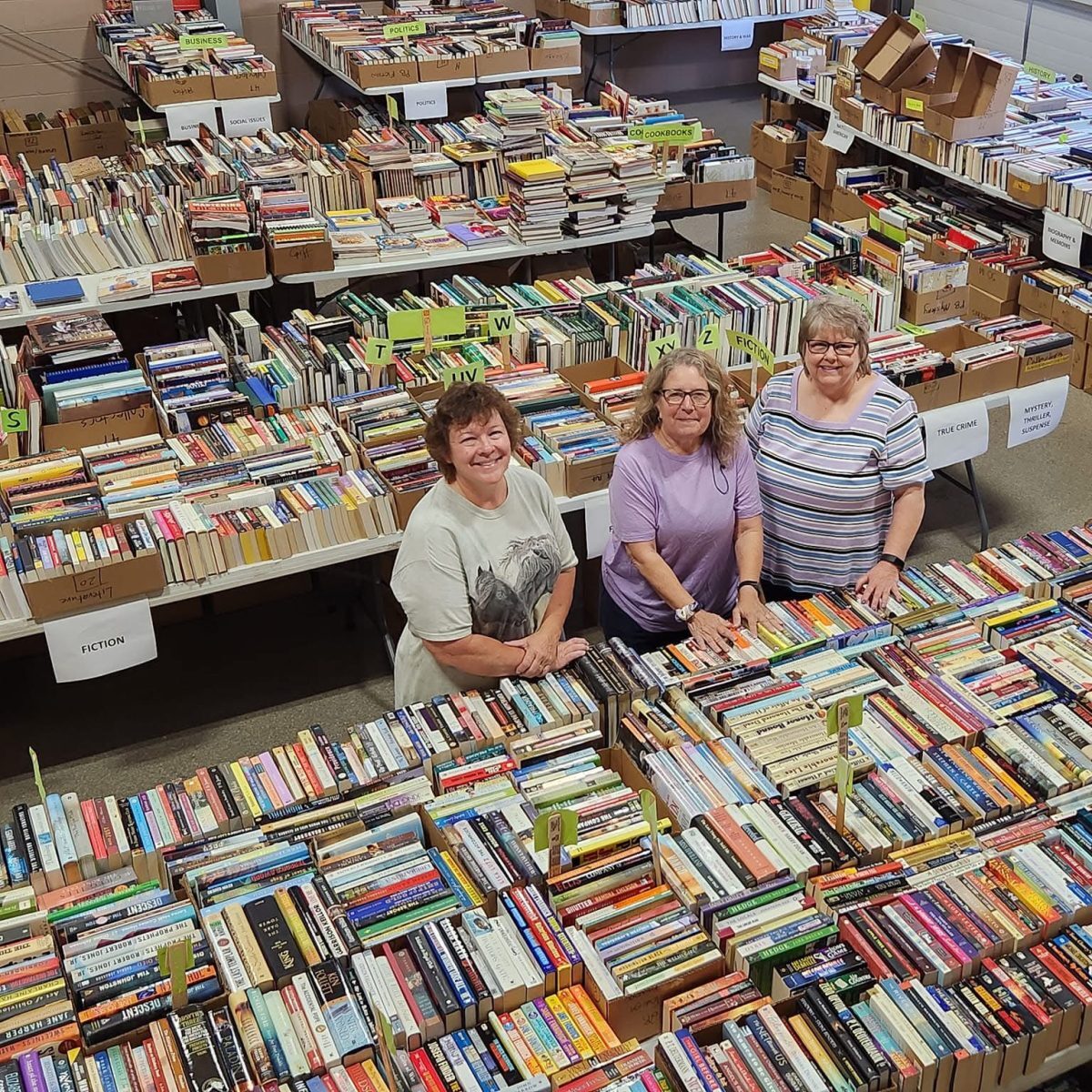 - Big Used Book Sale (end of September into October) – We bring in a truck load of gently used books that are then sorted by genre and sold to the public at reduced prices to allow for other readers to love them again before being recycled.